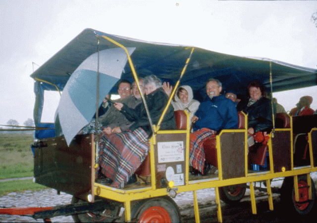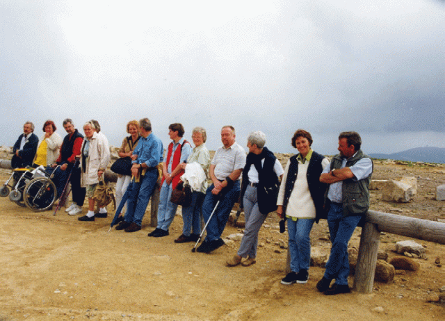 Die Reise 2001 führte in die Lüneburger Heide. Auf der Hinfahrt besichtigten wir zuerst das Kloster Wienhausen und fuhren dann zur Stadtbesichtigung nach Celle. Wegen vielem Regen und Wind sind davon nur wenige Eindrücke haften geblieben. Die Übernachtungen im Hotel Grenadier in Munster waren in einfachen sauberen Zimmern mit eingeschränktem Frühstück. Am Sonntag besuchten wir den Gottesdienst in St. Michael in Munster. Danach kleine Wanderung durchs Wummetal und nachmittags Kutschfahrt durch die Heide. Wir waren wohl die einzige Gruppe in der ganzen Lüneburger Heide, die an diesem Tag eine Kutschfahrt unternahm. Bei kaltem, regnerischen und stürmischen Wetter erlebten wir die Heide, teils in Decken gehüllt und mit Schirmen bewehrt, vom Pferdewagen aus einmal so, wie sie auf Ansichtskarten nicht dargestellt ist. Trotzdem hatten wir großen Spaß, der schließlich zu einer auch uns bis zu diesem Zeitpunkt unbekannten "Schwanzverwirbelung" (Regenschirm und Pferdeschwanz) führte. Trotz oder gerade wegen dieses Wetters unternahmen wir anschließend noch eine Wanderung durch das Pietzmoor. An den folgenden Tagen besuchten wir noch Lüneburg (Stadtführung und Salzmuseum) sowie Fallingbostel mit Lönsgrab und den Vogelpark in Walsrode.