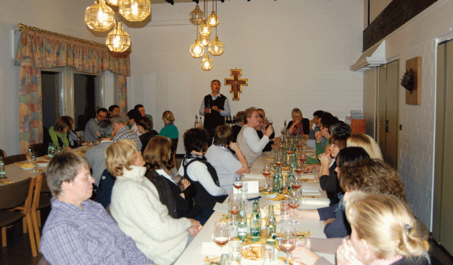 Bei so mancher Weinprobe hing auch unsere Glückseligkeit von dem angebotenen Tropfen ab. Im Laufe der Jahre haben wir ca. 650 Flaschen des guten Tropfens verköstigt. So verinnerlichten wir das Kolpingzitat aus seinen Schriften: